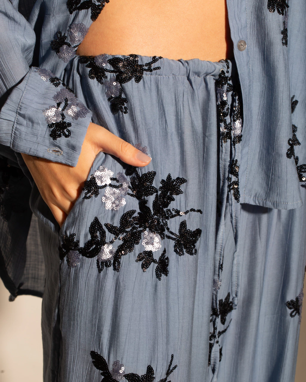 Detalhes de Design: Calça fluida, toda bordada e com bolsos. Possui elástico e cordão no cós. Essa calça é perfeita pra mulheres conectadas a moda e que gostam de peças diferentes.