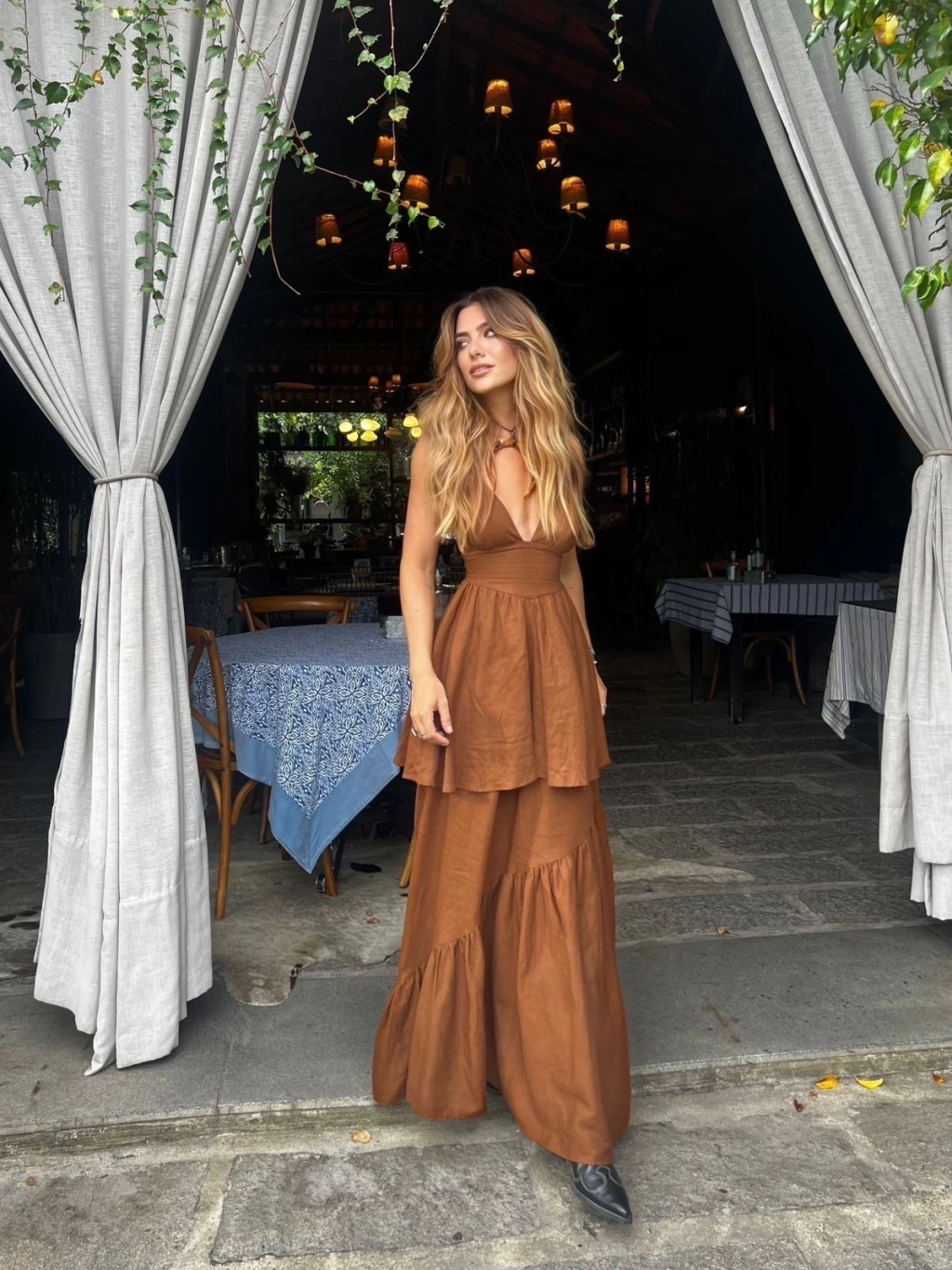 Detalhes de Design: O Vestido Yuna é uma peça elegante, confeccionada em linho misto, que combina sofisticação com um toque de leveza. O design de alcinhas finas e a pala na cintura ajudam a valorizar a silhueta de forma delicada, enquanto os babados assimétricos adicionam movimento à peça. O elástico nas costas garante um ajuste perfeito ao corpo, proporcionando conforto e flexibilidade.